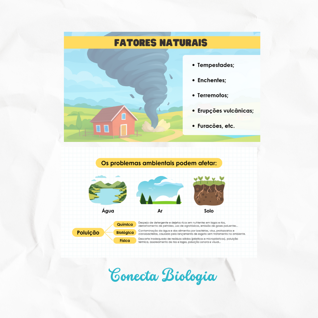 Slides sobre Problemas Ambientais, com abordagem conceitual acessível e contextualizada, favorecendo a compreensão das principais questões ambientais contemporâneas;